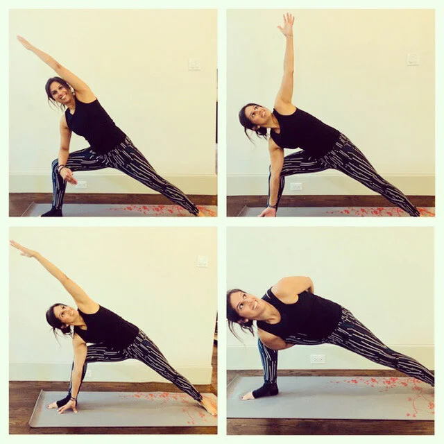 All of these poses are variations of the same powerful pose: Uttitha Parsvakonasana or Extended Side Angle Pose.